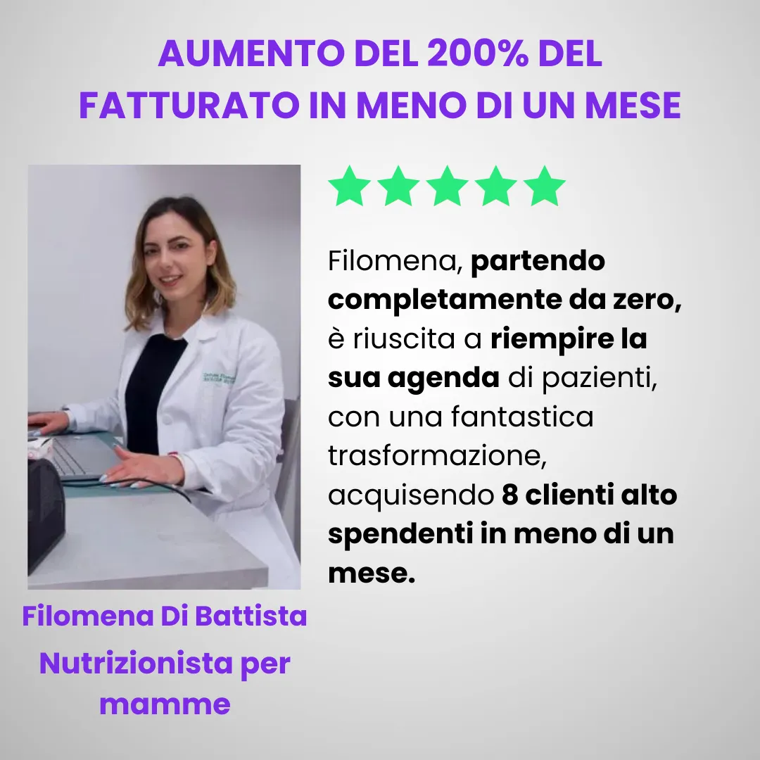 Filomena Di Battista, partendo completamente da zero, è riuscita a costruire un sistema che le ha permesso di riempire la sua agenda in poche settimane.