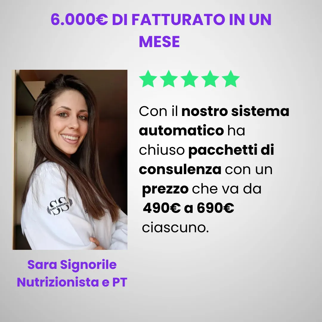 Dopo sole 3 settimane, Filomena aveva già acquisito 8 nuove clienti, vendendo percorsi da 450€, riuscendo così a ripagare completamente l’investimento fatto nel percorso.
